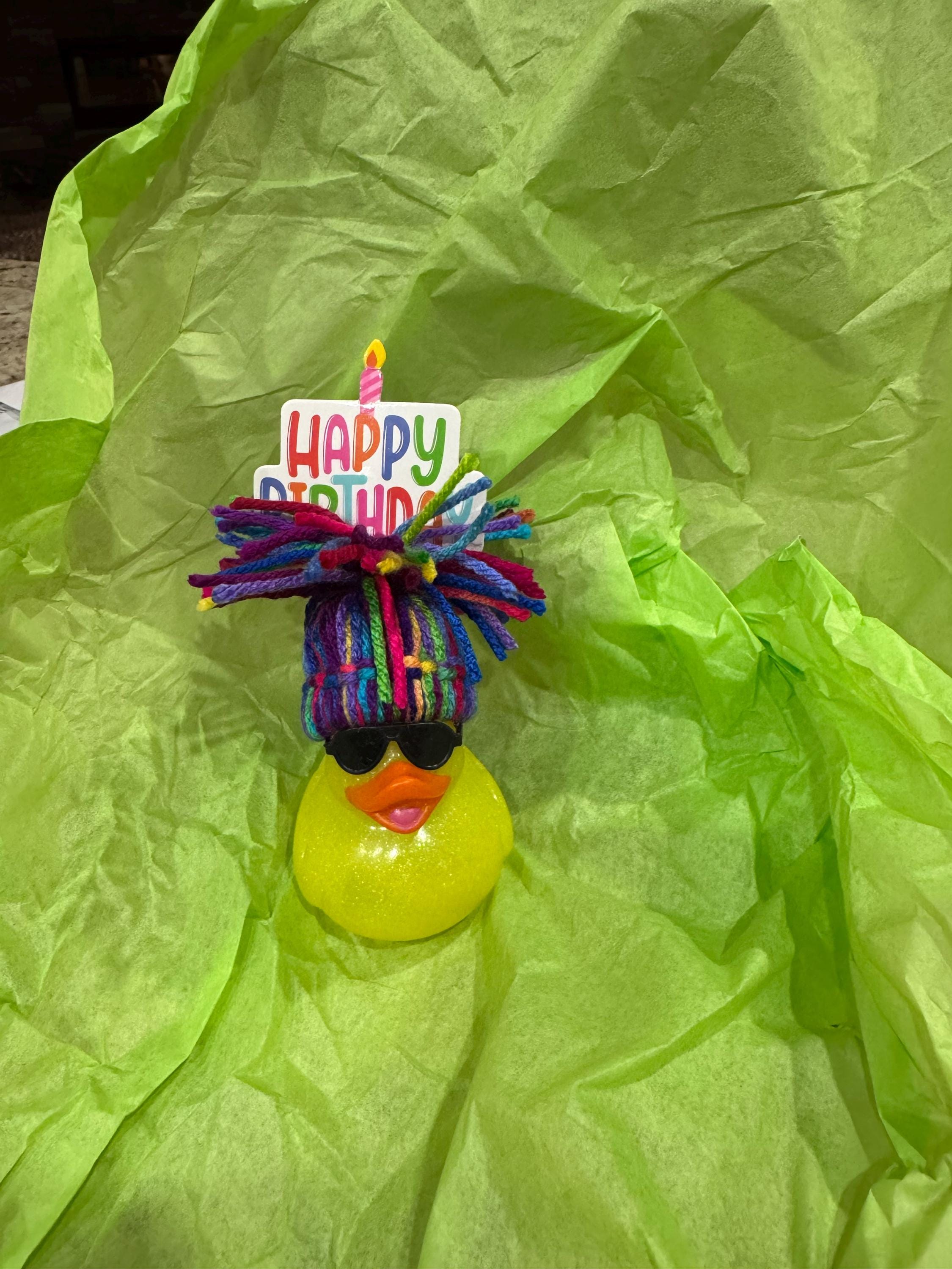 Happy Birthday duckie, duck it, get ducked, got ducked, birthday duck, rubber ducks, ducks, car accessories, car ornament, cruising ducks